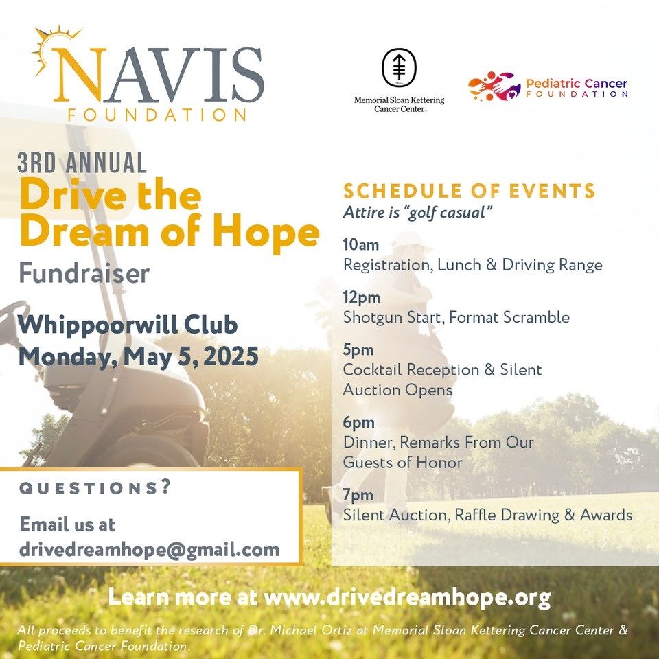 Join us for the Third Annual Drive the Dream of Hope Golf and Tennis Fundraiser, as we continue our fundraising journey for cancer research as a community. We’re getting the Westchester community together for a day of fun and fundraising, and an opportunity to play one of the most beautiful courses in the country. Help us to celebrate the research and work of Dr. Michael Ortiz, who supported the Fegan's young daughter, Alessia, through her battle with Wilms Tumor. This event is a continuation of our fundraising efforts for the Memorial Sloan Kettering Cancer Center, as well as the Pediatric Cancer Foundation.
